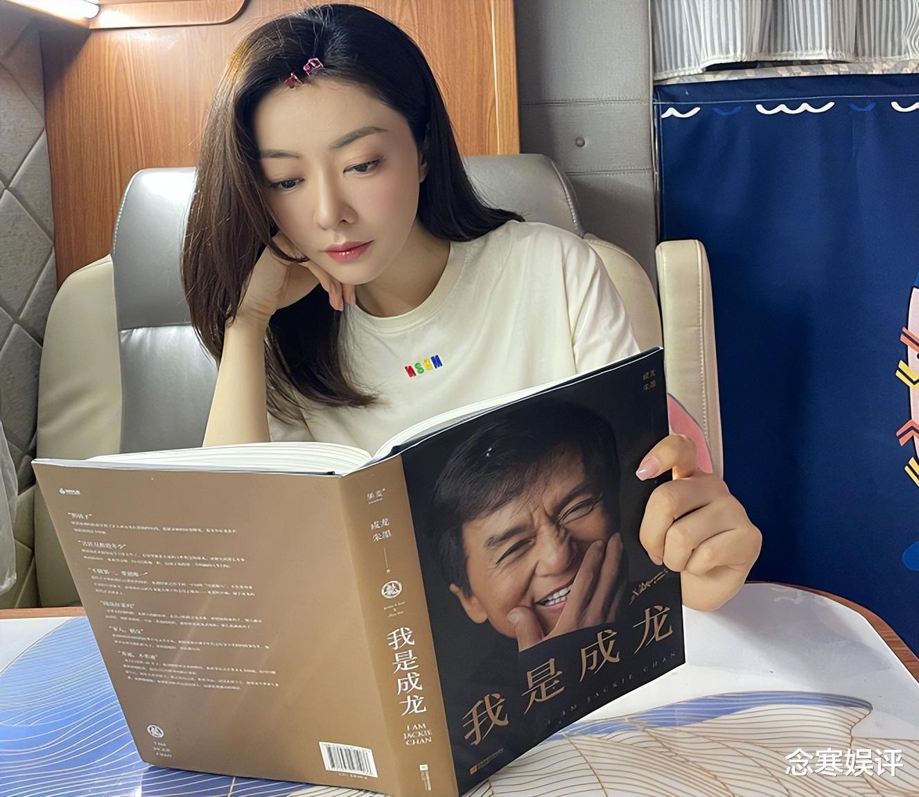 從照片中可以清楚地看到,熊黛林坐在房車舒適的皮沙發(fā)上,一只手托著下巴,另一只手捧著成龍送給她的簽名書,書名十分的搶眼,那就是成龍自出道以來,對(duì)外出版過的最具代表性的文學(xué)作品《我是成龍》。