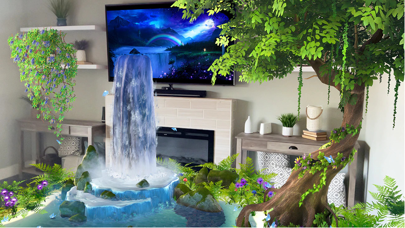 在觀看電視的時候,打開APP并讓攝像頭對準電視,一個夢幻的世界將會被帶到你的客廳,美妙的景色將延伸到屏幕之外,例如瀑布、海豚、蝴蝶、樹木、花草等等。