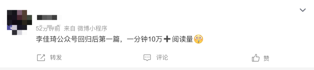 縱觀他后續(xù)的直播,雖有降溫,但始終難以撼動其“一哥”位置。接下來的幾天直播里,場觀人數(shù)也維持在2000萬左右,與他離開前基本持平。9月28日,李佳琦公眾號在停更三個月后首次發(fā)布直播預(yù)告,一分鐘突破10萬閱讀,“點贊在看”均破萬,這種流量,相當于一個千萬級別的賬號。