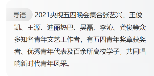 2021年的央視五四晚會,由于晚會主題就是獻給青年的,那邀請的流量明星就更多了,張藝興、王俊凱、王源、迪麗熱巴、吳磊、龔俊……