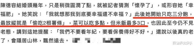 在還沒離婚的時(shí)候陳德容也吃胖了不少,有媒體還懷疑她是不是懷孕了。