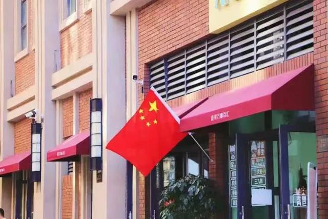 經(jīng)過五星紅旗迎風(fēng)飄揚(yáng)的街道