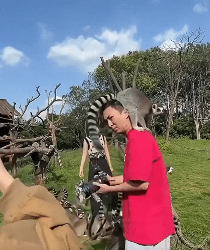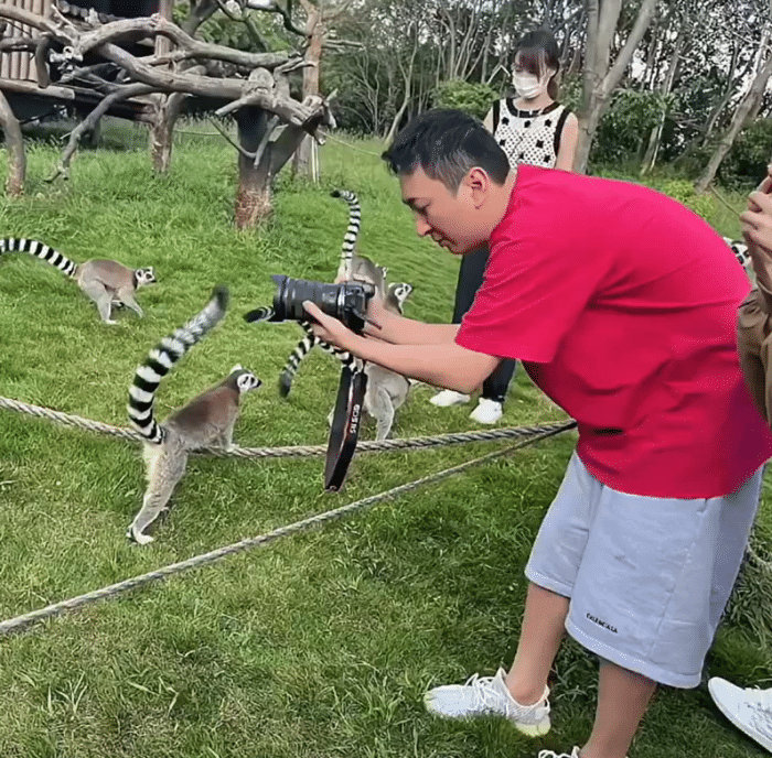 平時(shí)極少把玩攝影器材的王思聰,在動(dòng)物園里時(shí),全程都是舉著相機(jī)對(duì)著猴子們進(jìn)行拍攝,模樣非常專注。