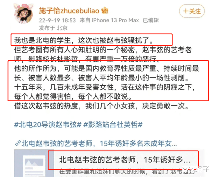 近日,北京電影學院學生施子怡勇敢地站出來,發長文進行實名爆料,以退學的方式,舉報國內知名編導類機構的一位校長杜英哲。