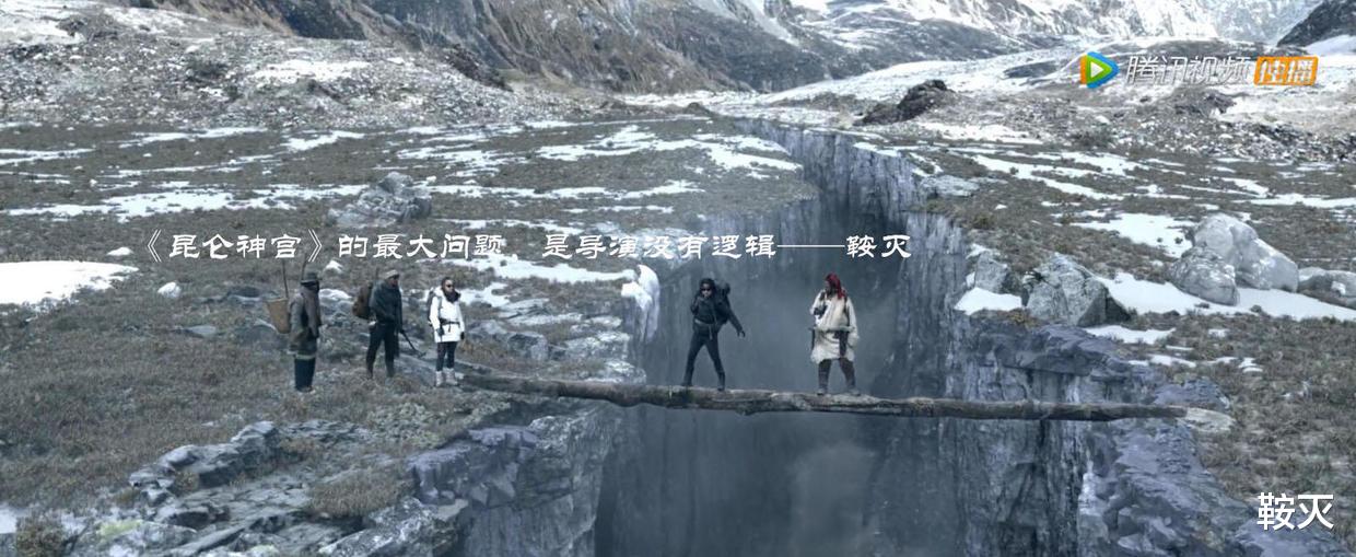 后面有一個鏡頭,是初一,胡八一和雪莉楊三個人站在這根木頭上。