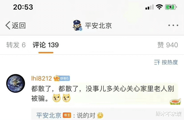 首先是平安北京回復(fù)網(wǎng)友的評(píng)論,網(wǎng)友:都散了吧,沒(méi)事兒多關(guān)心關(guān)心家里老人。平安北京表示:說(shuō)得對(duì)。平安北京是圈內(nèi)權(quán)威媒體,此前李易峰事件便是由它發(fā)出通報(bào)的,這一次它雖然沒(méi)有明說(shuō),但一句“說(shuō)得對(duì)”顯然是在為張一山說(shuō)話。