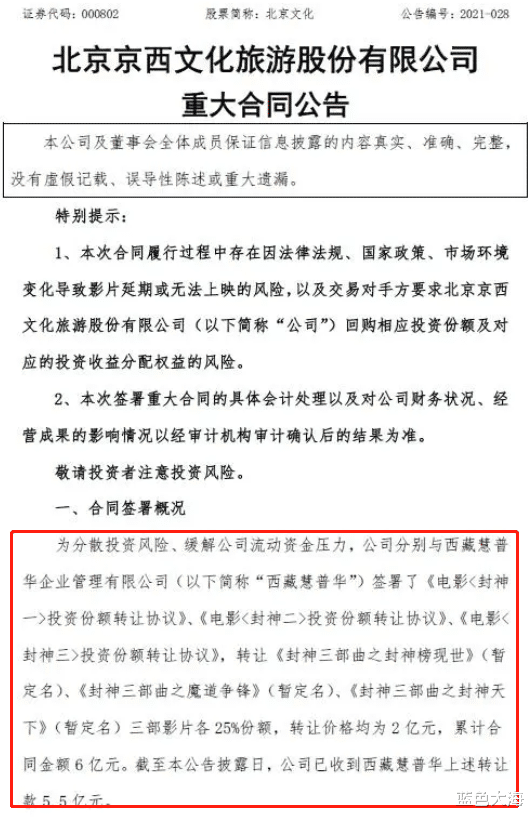 在那以后北京文化又被曝連年虧損,背上了不少債,甚至不得以要轉讓《封神三部曲》的股份抵債。