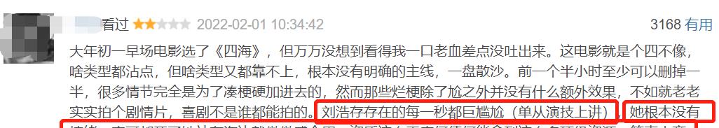 有觀眾吐槽:“劉浩存存在的每一秒都巨尷尬(單從演技上講),她根本沒有情緒,親哥都死了她站在海邊就微微蹙個(gè)眉……”