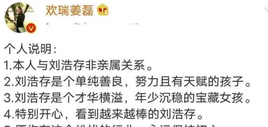 雖然后來他否認(rèn)了兩人的親戚關(guān)系,但可以肯定的是,他想捧紅劉浩存。