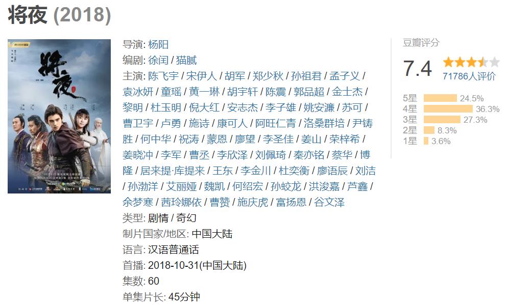 《秘果》已經(jīng)夠讓很多年輕演員羨慕他的好資源,但一年后,當(dāng)人們看到陳飛宇出演大IP改編的作品《將夜》時(shí),已經(jīng)不知道怎么形容他逆天的資源了。