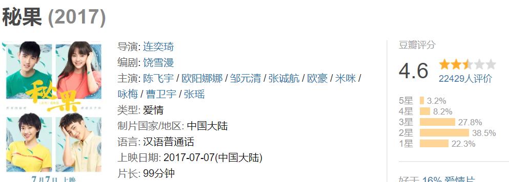 這部電影由光線影業(yè)出品,陳飛宇是當(dāng)然不讓的男主角,女主則是歐陽娜娜。