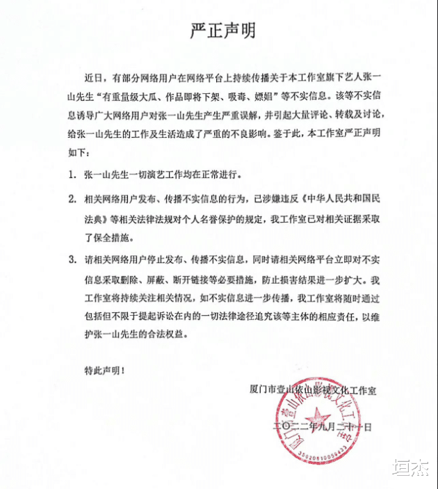 直到輿論發酵了整整一天后,張一山的工作室才姍姍來遲,發布了嚴正聲明。