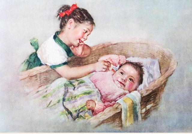 略大一點的姐姐手里拿著奶嘴,放到小弟弟嘴邊逗樂,臉上飽含著滿滿的關懷疼愛之情,這是一份甜蜜的責任,更一種純情的陪伴。