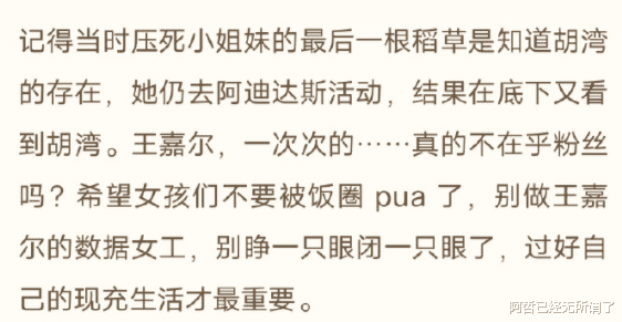 這些料也都是脫了粉的王嘉爾曾經粉絲總結的,她們本來是想要睜一只眼閉一只眼..但是自從知道了胡灣的存在之后,就不打算做王嘉爾的數據了。反正就王嘉爾的行為已經傷到了粉絲的心,也忘記了他自己的初心。