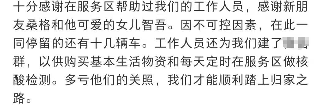 她稱一起停留的還有十幾輛車,服務區的工作人員還專門為他們拉了群,來保證物資的供應以及其它的日常需求。