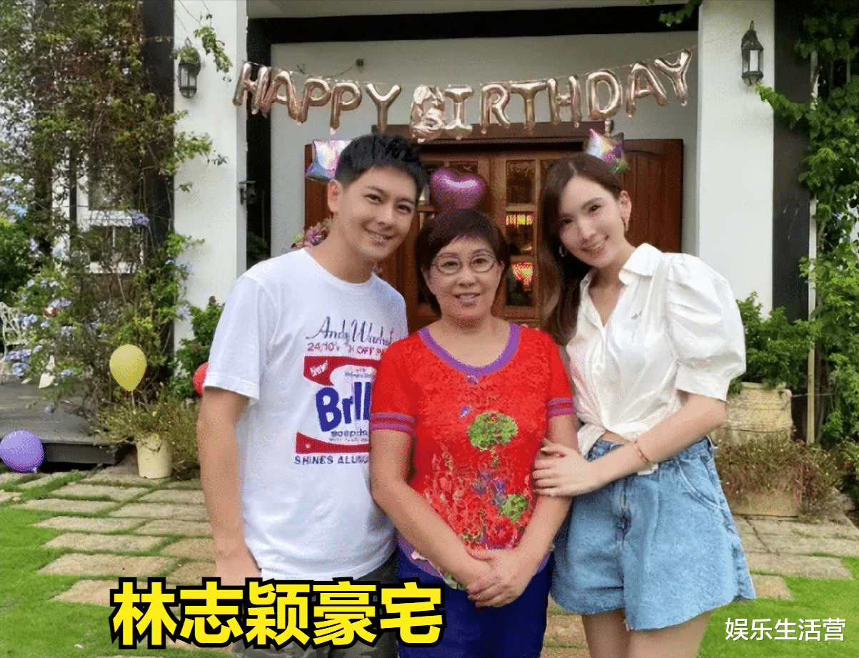 而在兩人的身后,是林志穎在臺北的豪宅,草坪修剪得像一地綠色的絨毛,墻外干凈如新,獨棟小豪宅看上去有三層。