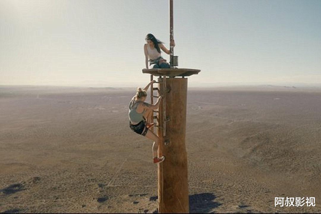 故事一如其名,兩個女生被困在610米的高塔上,缺水缺糧又求助無門,片長近兩小時就是看著她們在高塔上九死一生的求生過程。