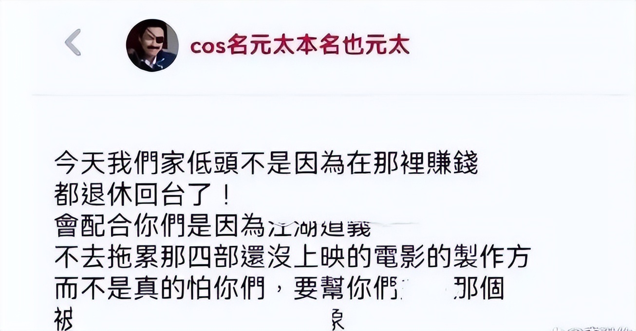 事件的發酵程度并未停止,這時一位自稱是李立群兒子的人出現了,并公開聲明,意思大致是“為了江湖道義,不去拖累四部還沒上映的電影的制作方,而不是真的怕你們……”。此言論一出,猶如推波助瀾之勢,難怪有網友直呼“這是在拆李立群的臺啊!”。李立群恐怕真的是坐立不安了,輿論浪尖直刺而來,隨后發聲否認此人并不是他的兒子,而此時人設完全倒掉的李立群,還有人會相信他嗎?