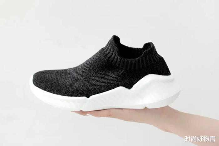 這雙鞋是高彈飛織紗線織成襪套狀,與鞋底一體成型。