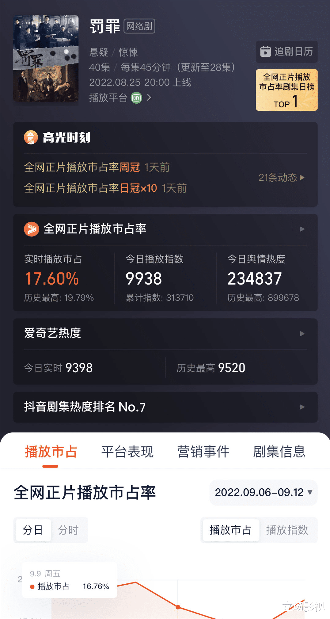 目前,《罰罪》還剩10集,臨近完結,在燈塔專業數據中,該劇已經連續拿下10次播放市占排行日冠,觀眾的選擇最能說明問題,《罰罪》依然火爆。