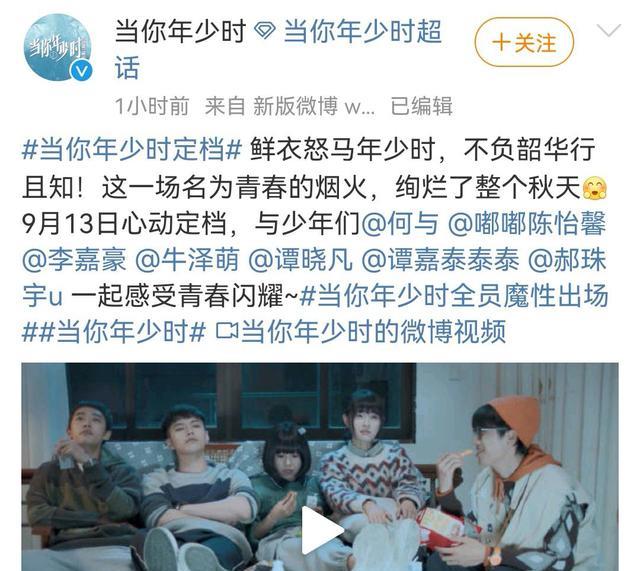 而如今又一部活力校園青春題材劇《當你年少時》來了,正好填補了劇集市場該類題材劇的空白,明晚(9月13日)優酷獨播,演員陣容不錯,值得期待。