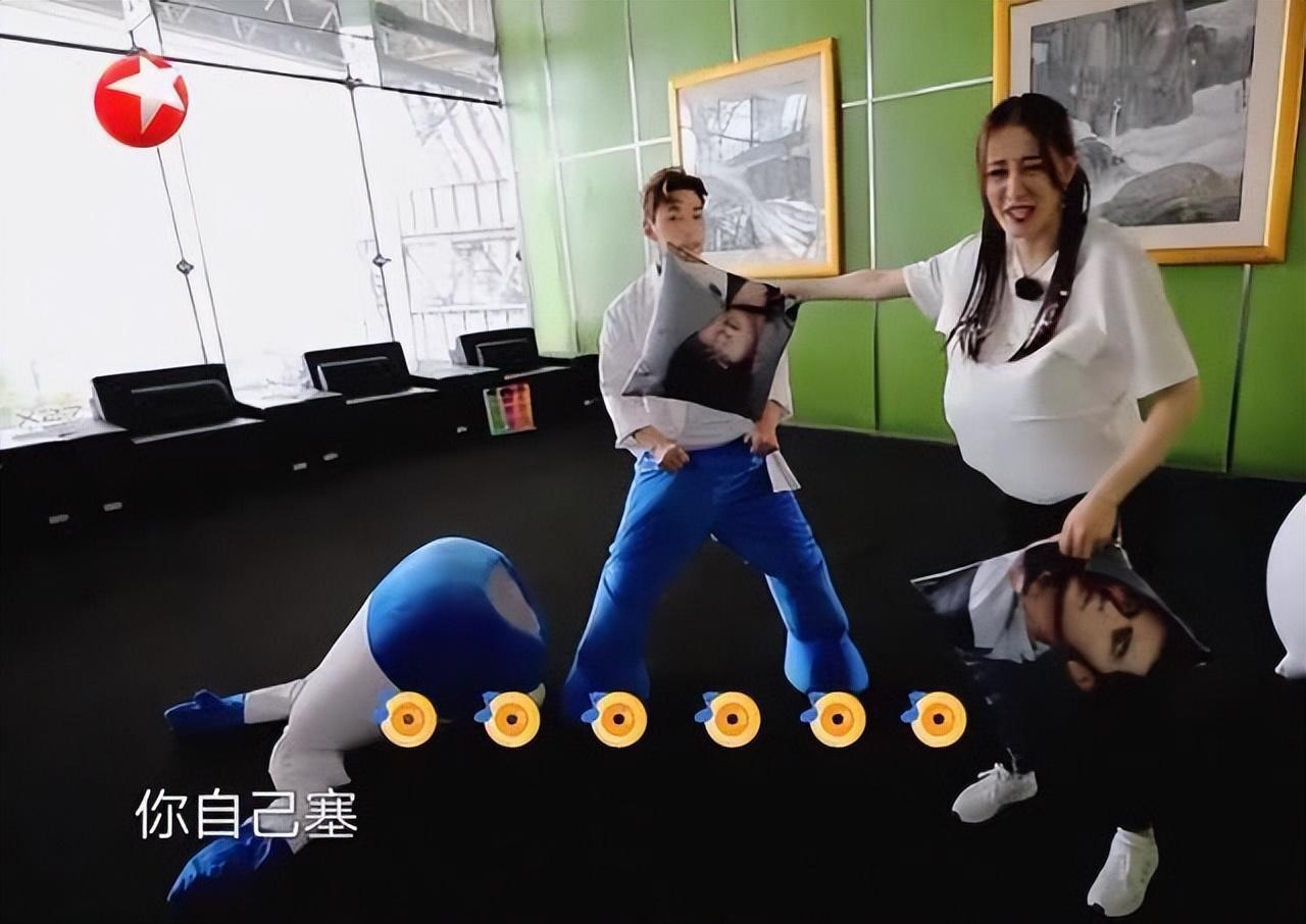 為了不影響節目錄制,熱巴只能強顏歡笑地來塞抱枕,劉憲華則還在嘴里念叨著:“塞進來,用力!”