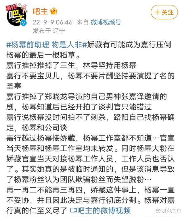 嘉行說謊楊冪沒有時間,推掉《刺殺》,結果楊冪知道后親自和公司談;