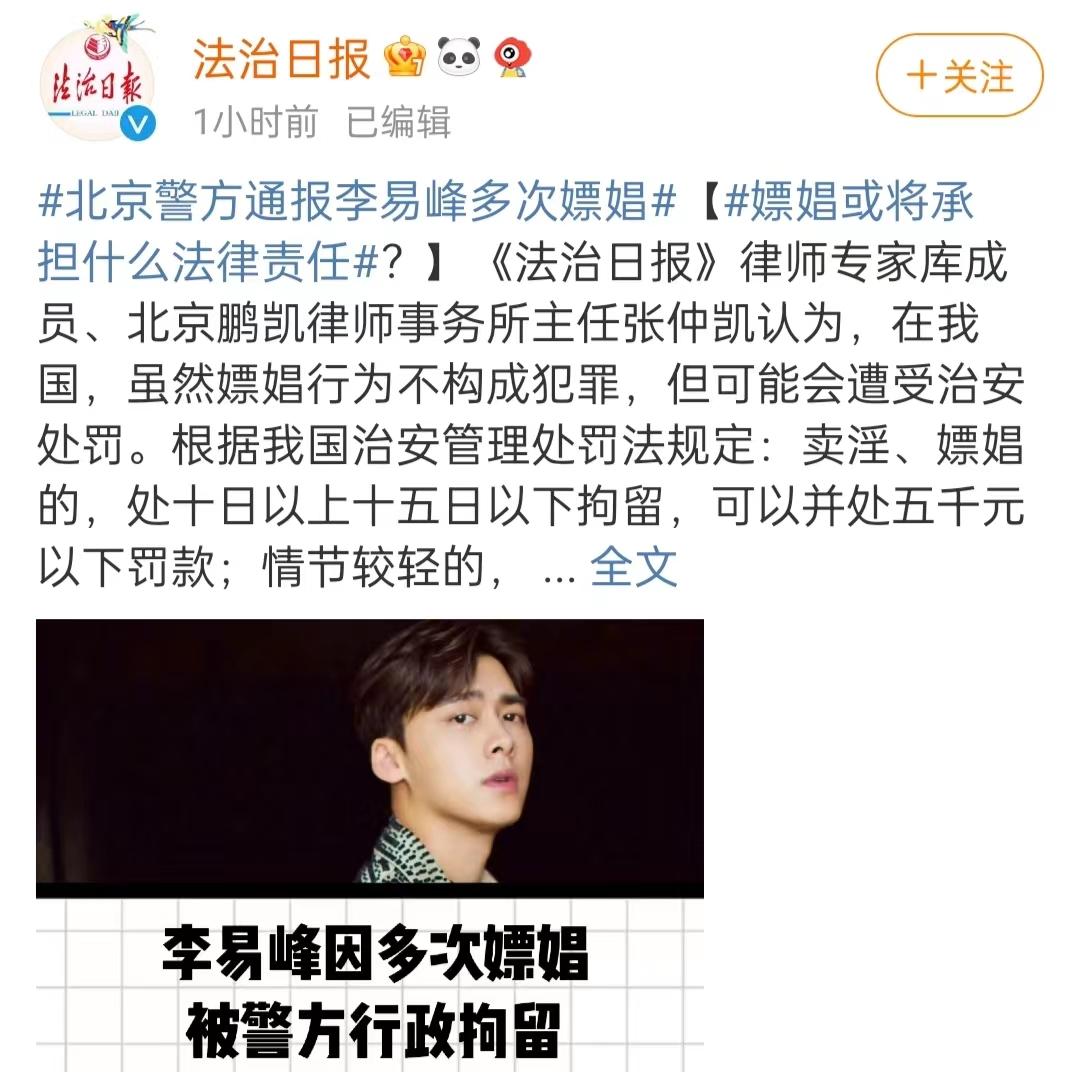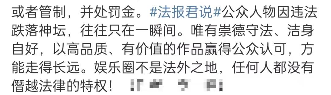 法治日報官方更是直接發文科普嫖娼應該承擔怎樣的法律責任,并強調公眾人物只有崇德守法、潔身自好才能走得長遠。