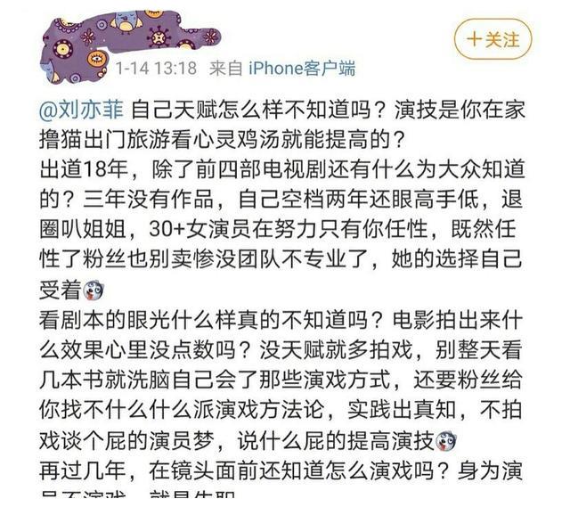 果然85花的粉絲都是事業批!一個個說起來絲毫不留情面,劉亦菲的粉絲之前在吐槽她很多關于現狀和未來規劃的事情,不過劉亦菲似乎沒有聽進去。