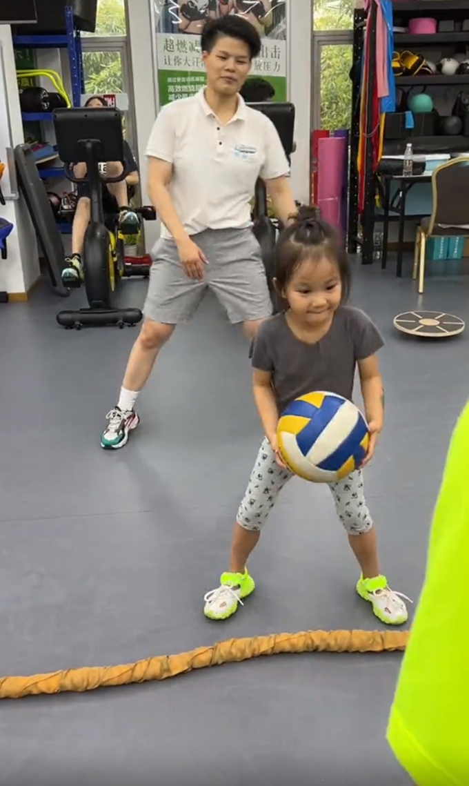 她在教練的指導下,運球、跳大繩,認真的模樣可愛極了。4歲就那么愛運動,實在難得,難怪丁子峻都被她激勵到。