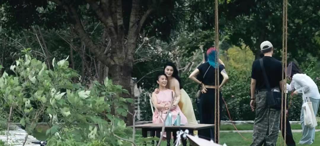 當天,范冰冰與媽媽在街頭合照,旁邊還有助理與攝影師。兩人緊緊挨在一起,擺出了各種姿勢,看起來非常開心。他們選擇在一個森林公園拍照,這里樹林茂密景色不錯,看起來很涼快。