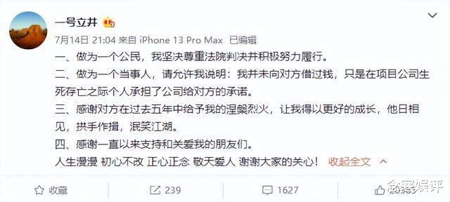 面對巨大的債務危機,李亞鵬從未害怕退縮過,此前還通過微博直面債務問題,表示將會積極努力履行法院的判決義務,會承擔自己相應的責任,絕對不會以任何理由去躲避,感謝大家對他的支持和關愛。