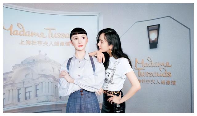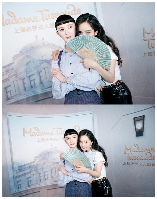 雖然蠟像再丑,但畢竟也是自己。互動拍照也是必不可少,楊冪和蠟像的同框打卡,對比簡直慘烈。拍照姿勢好看也借助了道具拍攝,但還是擋不住蠟像僵硬的臉龐。楊冪有多好看,蠟像就有多奇怪。