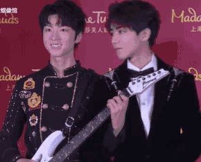易烊千璽看到蠟像也有幾秒破功,一直在憋笑。看到自己蠟像長這樣,還要保持微笑,確實有億點點困難。