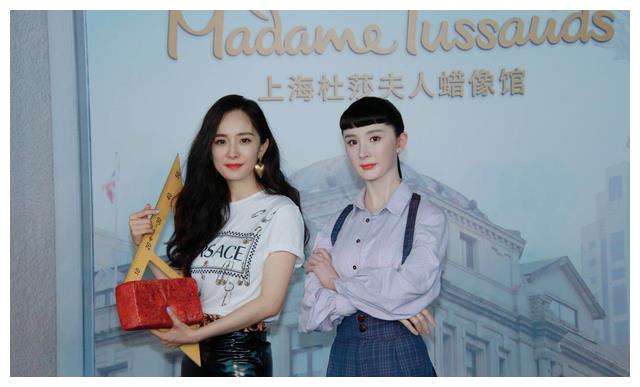 蠟像和真人對比起來,感覺就是盜版楊冪。從圖中也能看出楊冪確實是在努力營業,露出勉強微笑。(好氣但還是要保持微笑)