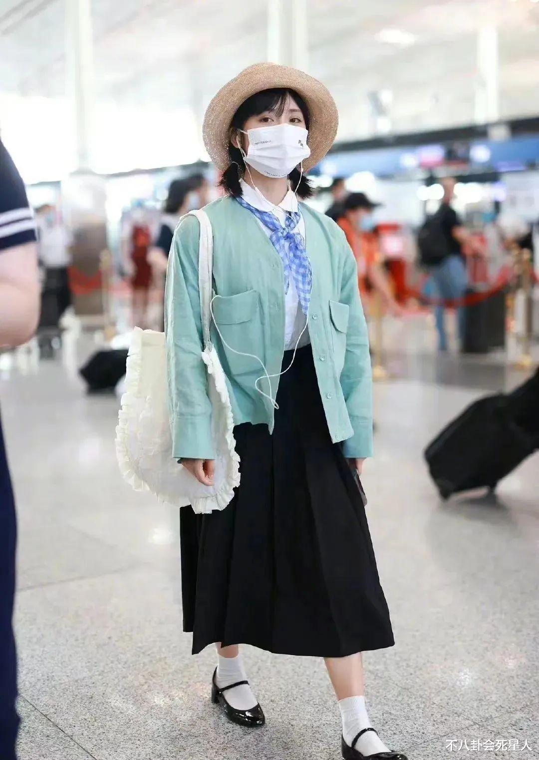 此前,沈月在社交平臺上分享了一組自己的機場照,照片中她扎著兩個小辮子,穿著綠色外套,乖巧地坐在座位上,個子小小的,非常可愛。