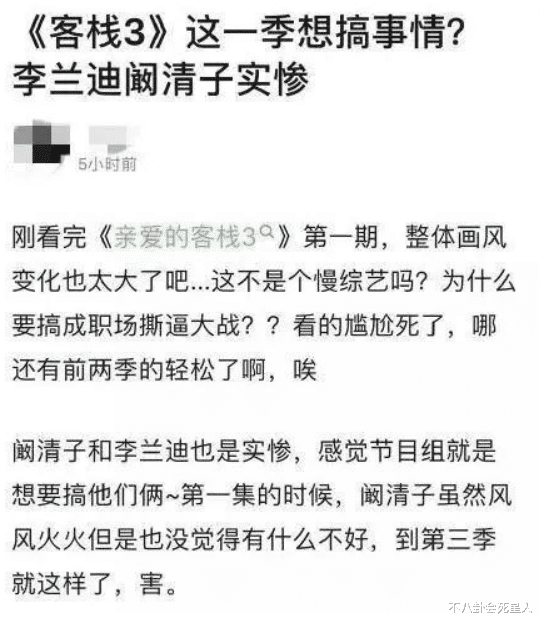 而李蘭迪被塑造成心機重的小女生,一個客棧經(jīng)營類的節(jié)目,成了職場撕X大戰(zhàn),明星們之間各種暗流涌動。