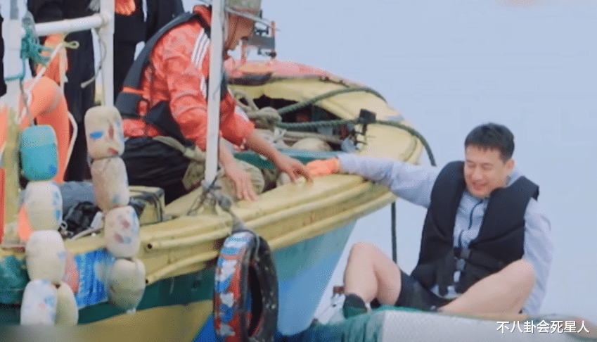 他們?nèi)启~,日上三竿才起床,漁船是當?shù)貪O民開的,撈的魚籠也是漁民提前一晚放好的,明星們做一個拉起魚籠的動作就好了。