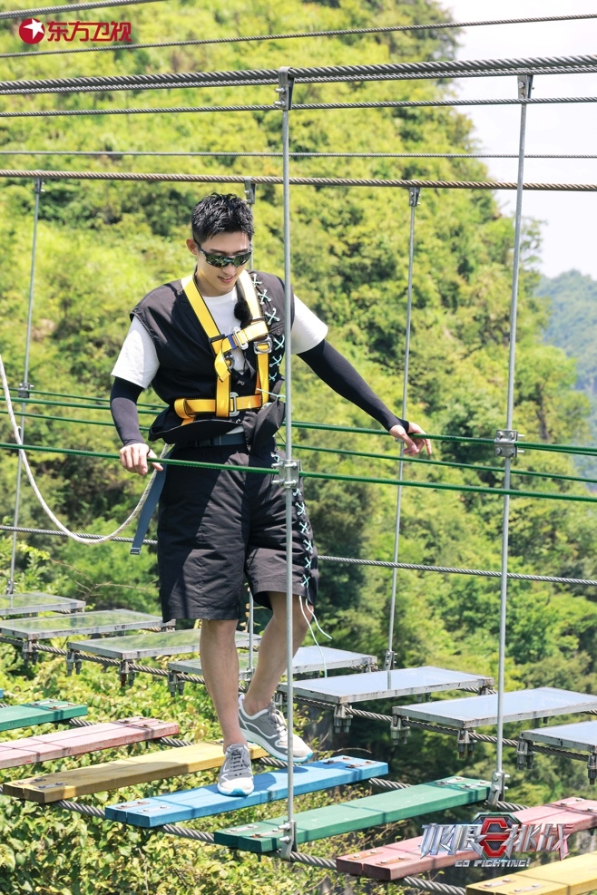 武陵山脈風(fēng)景險麗,高山與空谷,溝壑與幽澗相映成趣,尤其有了上期節(jié)目攀爬懸崖的經(jīng)驗(yàn),“寶藏打卡隊”的成員們在面對群山峻嶺時也變得從容不少。面對相當(dāng)于30層樓高的懸梯,曾經(jīng)恐高的黃景瑜這次卻淡定地一路向前,連聲大呼“比上次好多了”,他還秒變“二哈”,蹦蹦跳跳來回穿梭好不快活。而老大哥王迅更是自在,調(diào)侃自己閉著眼睛也能走。