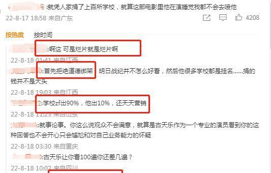 原來古天樂捐贈的學校,政府方出資90%,古天樂只出10%,但鋪天蓋地的宣傳讓不少網友以為學校都是古天樂全資建立的?!半娪昂貌缓门c慈善無關”“不接受道德綁架”等評論透露出網友不買賬的想法。