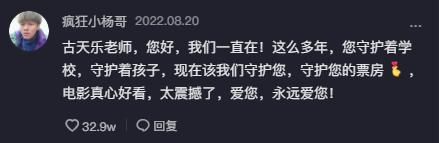面對古天樂的連麥請求,小楊哥很快便在這條視頻下留言:古天樂老師,您好,我們一直在!您守護著學校,守護著孩子,現在該我們守護您,守護您的票房,電影真心好看,太震撼了,愛您,永遠愛您!