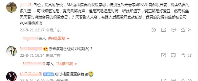 aespa真的是一步一個腳印地在進化,從打歌舞臺假唱,到商演舞臺假唱,再到如今的演唱會舞臺假唱,粉絲還能再沒點脾氣嗎?當然少女時代和BOA的對嘴假唱也是讓人無法理解,而且她們是所有舞臺都沒開麥,SM娛樂真的是拉低KPOP的形象,演唱會假唱的下一步又會是什么呢?說實話與其假唱,不如不開這個家族演唱會。