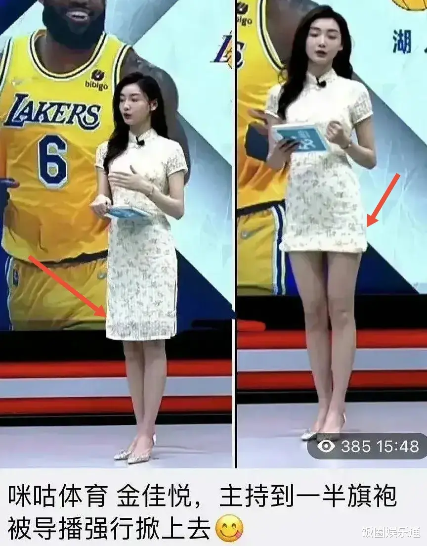 金佳悅當(dāng)時(shí)穿著長(zhǎng)旗袍主持NBA球賽,后來(lái)覺(jué)得旗袍跟球賽的調(diào)性不符,主持過(guò)程中,她將旗袍掀了上去,整個(gè)裝扮變成了連衣短裙款式,該事件在主持界引起了很多轟動(dòng),很多網(wǎng)友都知道這件事。