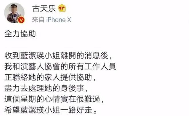 古天做為香港藝人協會主席,主動幫忙聯系家人,并且出錢出力協助完成了葬禮。