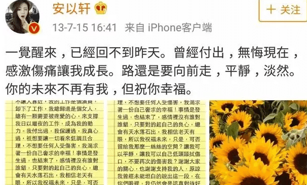 好在睡一覺(jué)起來(lái)的安以軒表現(xiàn)的很大度,發(fā)文祝他幸福。