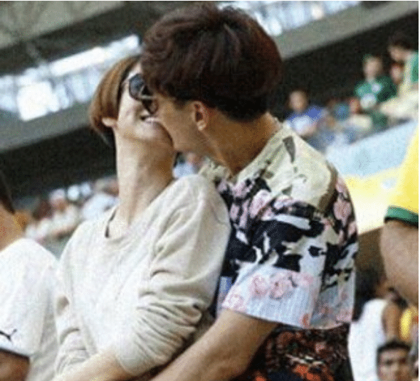 2014年6月份,李承鉉和戚薇看球賽被拍,兩個(gè)人在觀眾席旁若無(wú)人的甜蜜擁吻。