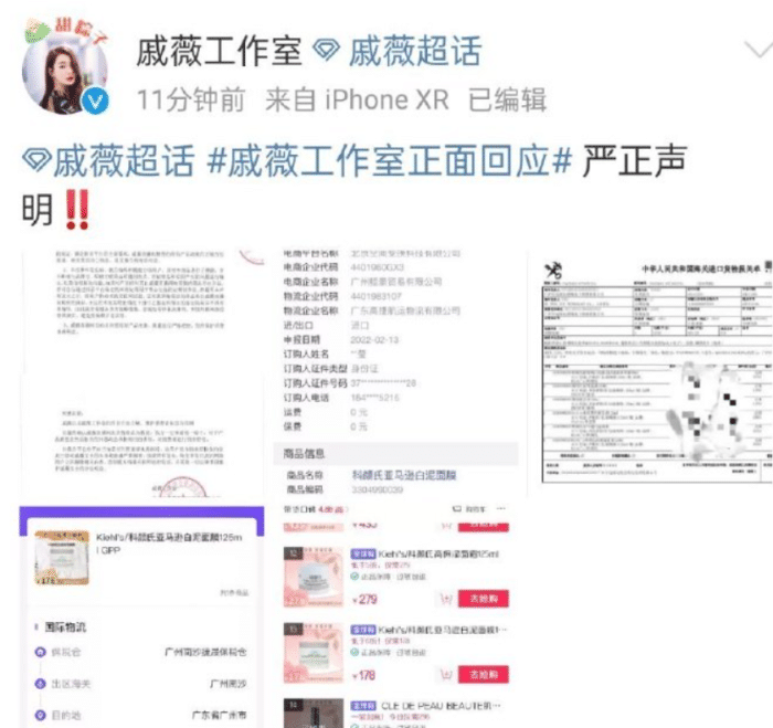戚薇工作室之后也發(fā)了聲明,說(shuō)是回溯了此商品的售賣、售后情況,“直播間產(chǎn)品在購(gòu)買鏈路上無(wú)假貨可能“。