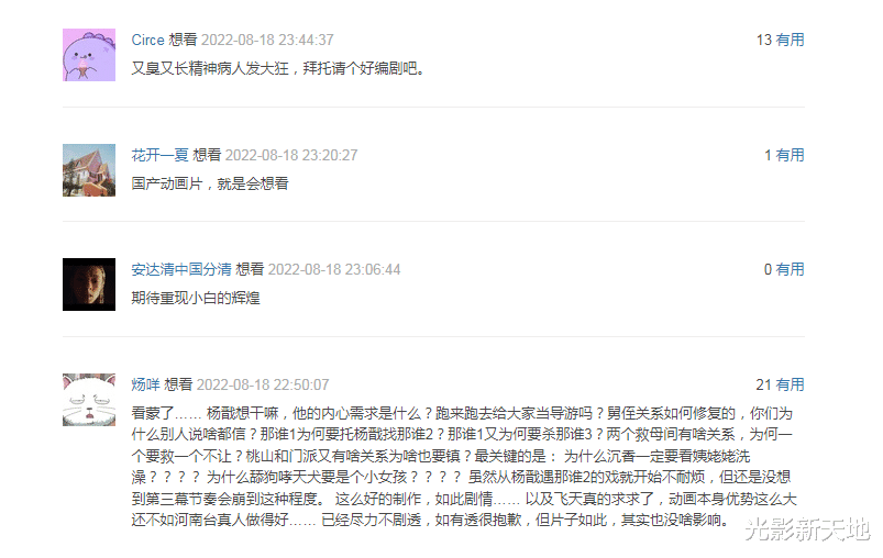 但是,翻看《楊戩》的豆瓣評論,則是另外一種情況。