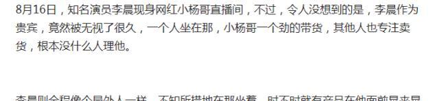 所以大家就會發現,整場直播中小楊哥只顧忙著帶貨,其他工作人員也在對流程,身為特邀嘉賓的李晨卻被無視了。