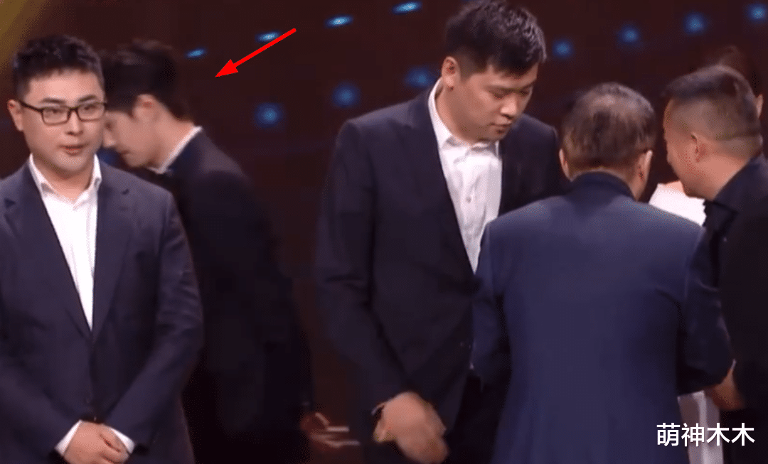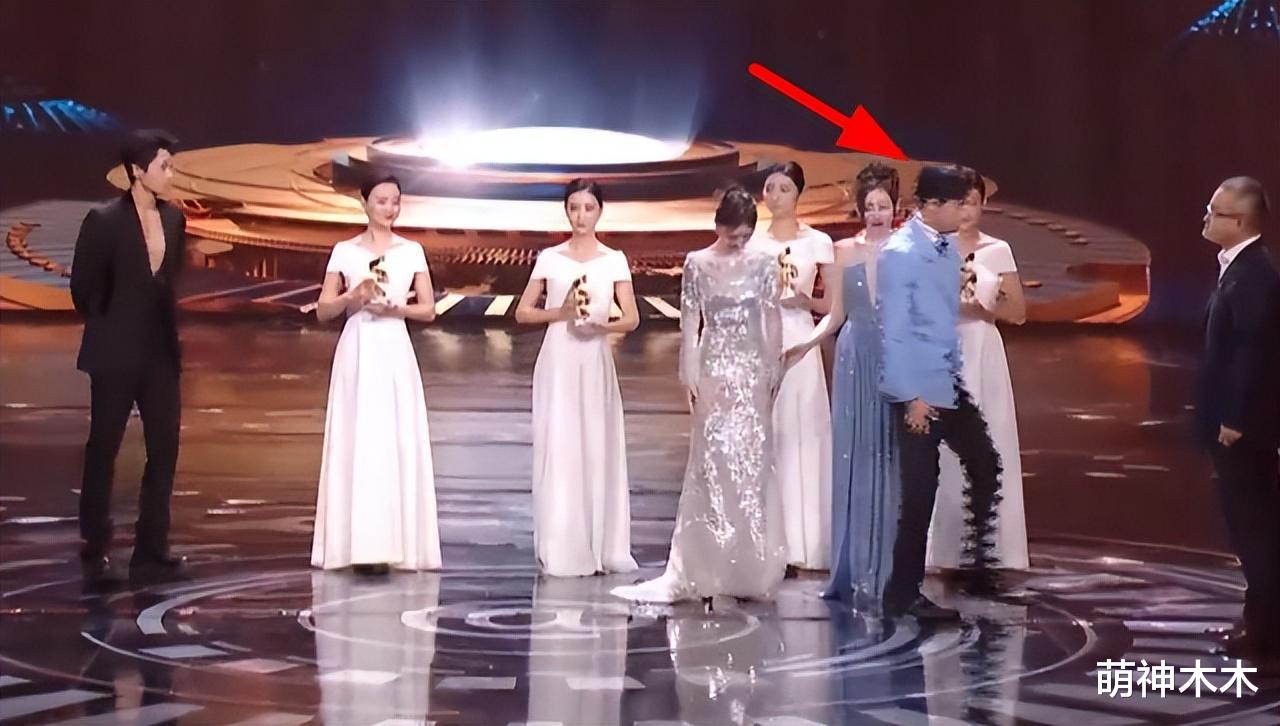 到了王一博所在劇組上臺領獎的時候,他也是習慣性溜邊站,最后還是導演把他叫了回來。